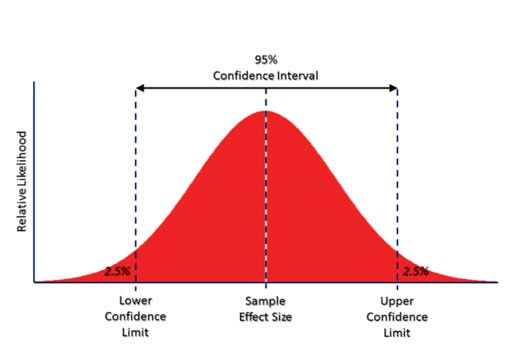 (132–139 gm)은 신뢰 구간이다. 실제로 가치가 있는 값의 범위라는 뜻이다. CI(Confidence Interval)는 모집단이 존재하는 것으로 확신하는 범위를 표현하기 위해 사용된다. 모집단의 추정치를 표현하고 싶을 때마다 CI를 명시하는 것이 좋은 방법이다. CI의 폭은 수집된 표본의 모집단에 대해 가지고 있는 확실성에 대해 많은 것을 말해준다. 모집단에 대해 잘 모를 때는 t-분포를 사용하여 신뢰 구간을 찾아야 한다.