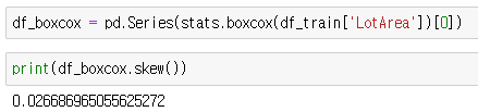 log 변환과 꽤나 비슷하지만, 수치로는 Box-Cox가 더 좋다.