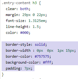 여기에서 수정할 CSS는 entry-content h3(제목2) 태그이다.