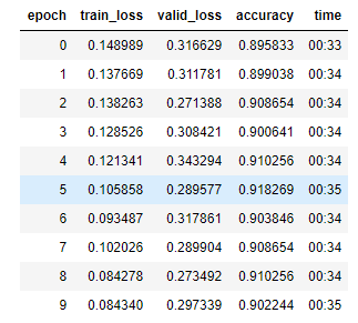 만약 모든 layer를 학습시키고 싶다면 학습 이전에 learn.unfreeze()를 입력해주면 된다.