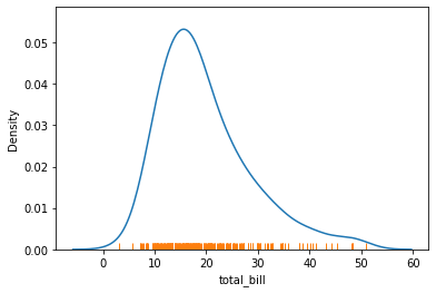 주황 색선이 rugplot, 파란색 선이 kdeplot이다. rugplot은 보조 그래프 정도로 참고용 이라보면 된다.