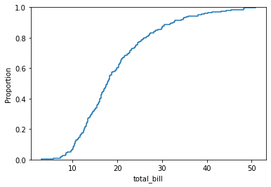# == sns.displot(x=df['total_bill'], kind='ecdf')