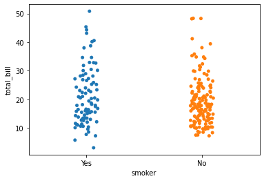sns.stripplot(y = df['total_bill'], x = df['smoker'])
