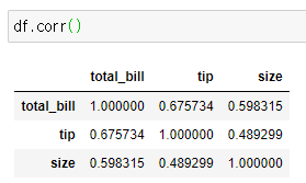 우리의 데이터에는 3개의 numerical variables들이 있다. 이것들 사이의 상관 행렬(correlation matrix)을 만들어보자.