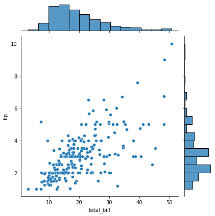 - 두 displot 사이에 scatter plot이 추가되어 분포를 추가로 확인할 수 있다.