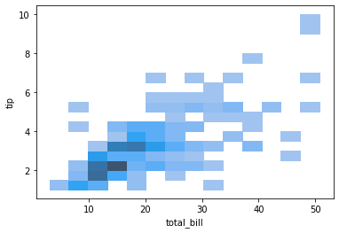# == sns.displot(x=df['total_bill'], y=df['tip'], kind='hist')
