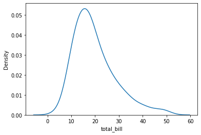 # = sns.displot(x=df['total_bill'], kind='kde')