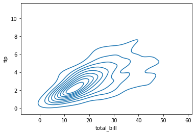 # = sns.displot(x=df['total_bill'], y=df['tip'], kind='kde')