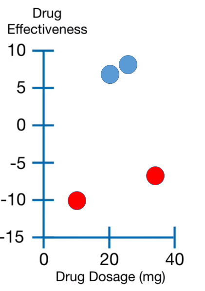 위와 같은 데이터가 있다고 가정하자. X축은 복용량이고, Y축은 효과이다.