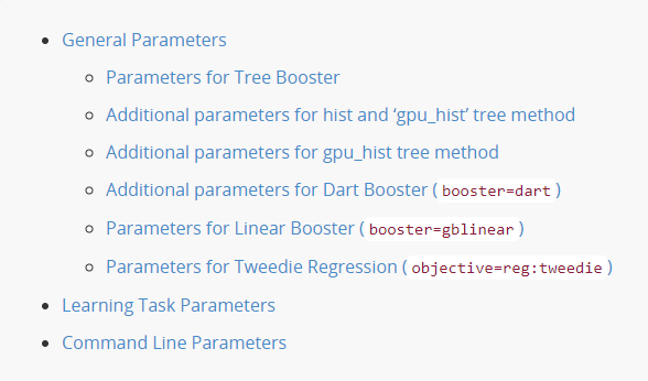 Tree Booster를 사용하기 위해서는 세 가지 유형의 파라미터를 설정해야 한다.