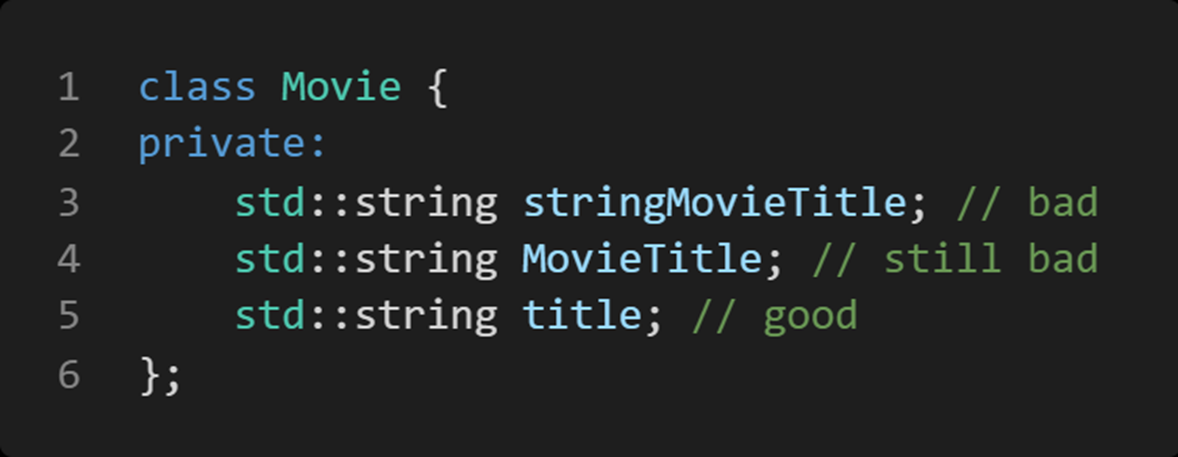 멤버 변수에 m_접두어를 붙일 필요 없다.